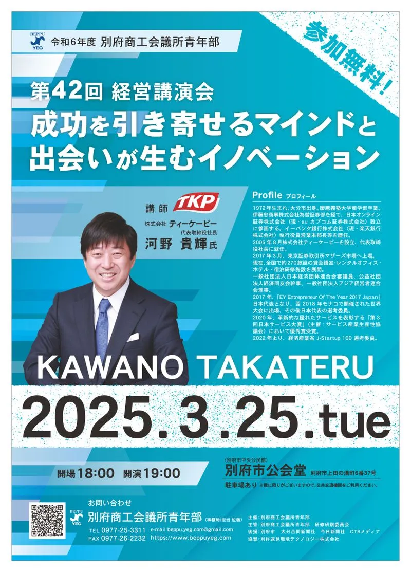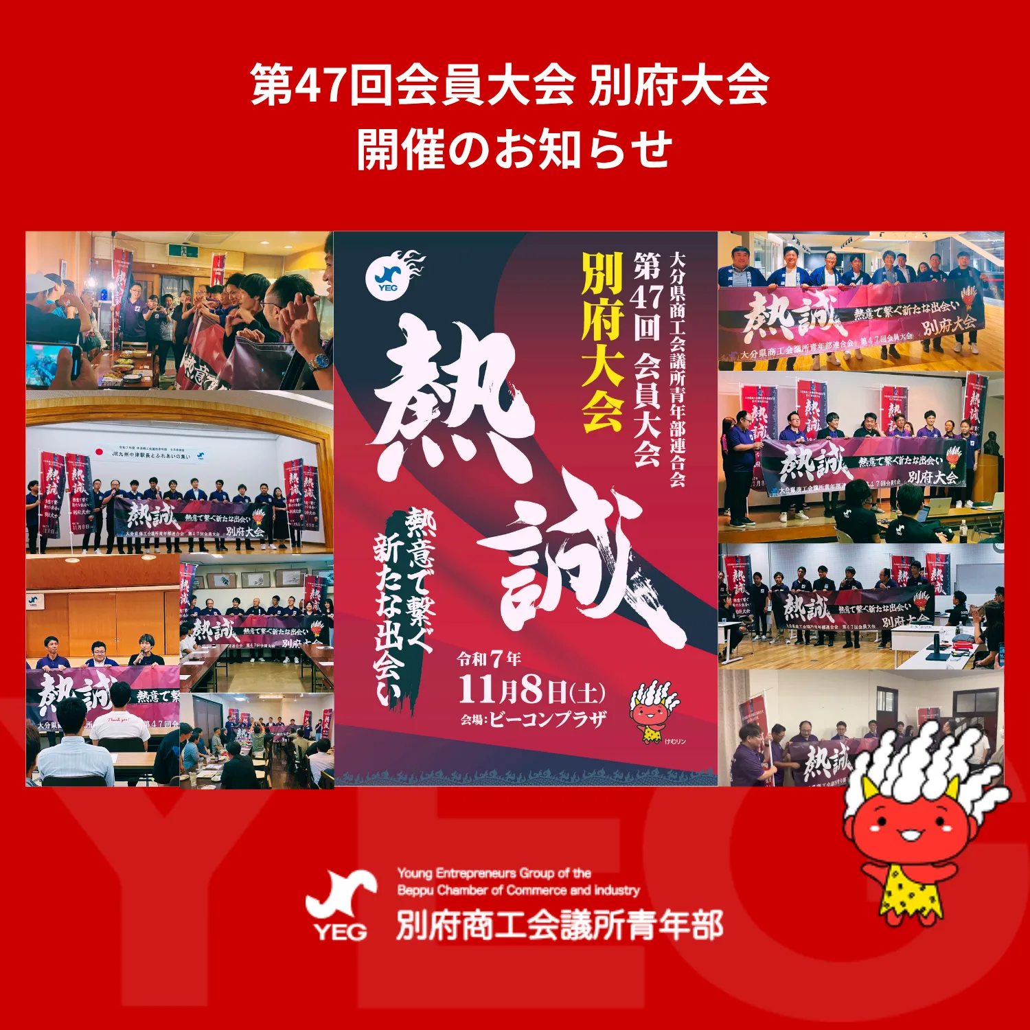 別府という地域を愛し、自分たちの夢を提言し、行動で実現していこう、の志を持つ若き世代の仲間が集まることから、さまざまな経営資質向上のための研修と、日ごろのビジネス活動では得られない異業種ネットワークの場を得られるのが別府YEGです。