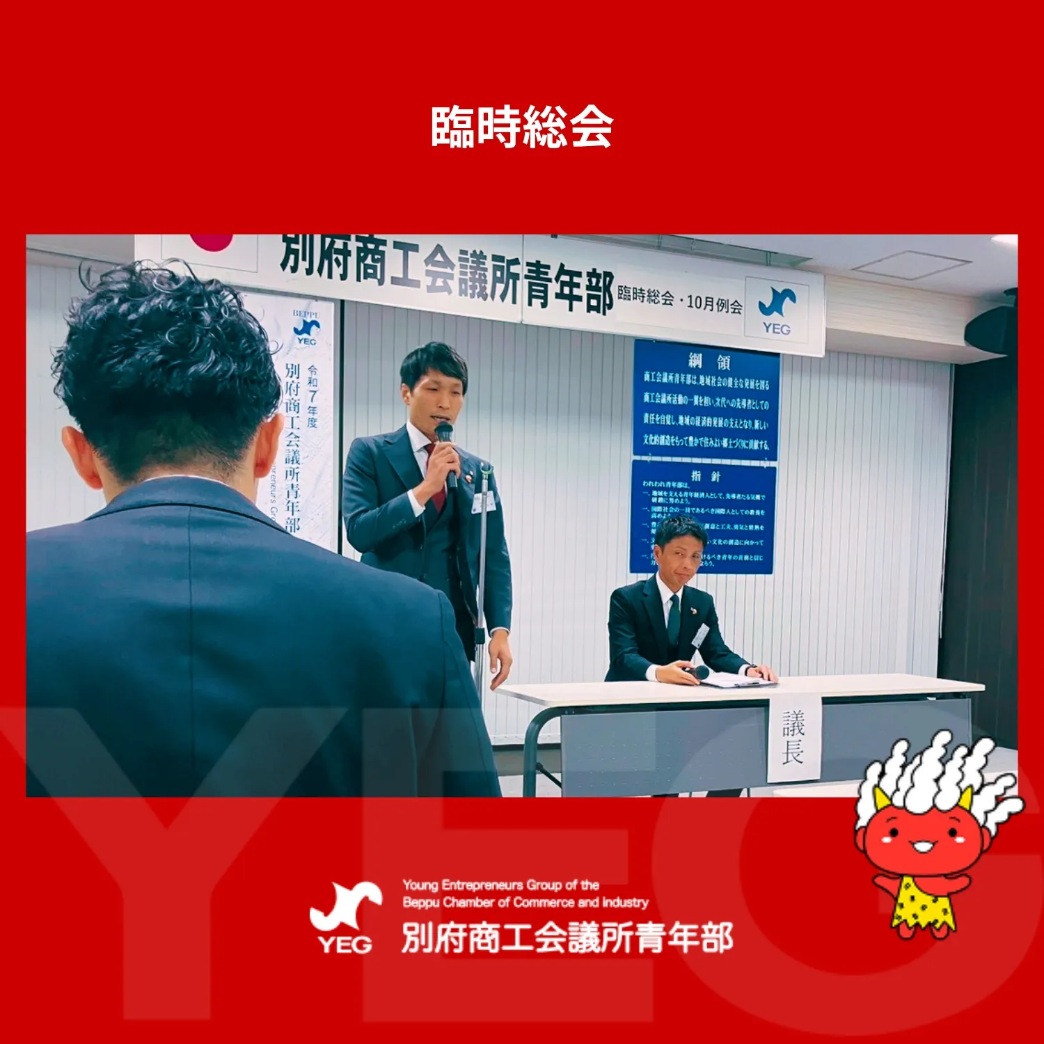 2025年10月23日(木)、別府商工会議所 大会議室にて、別府商工会議所青年部(別府YEG)令和7年度 臨時総会を開催いたしました。